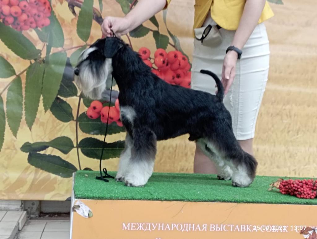 ЧЕМПИОН МИРА 2016, ИНТЕРНАЦИОНАЛЬНЫЙ ЧЕМПИОН, Чемпион России, Чемпион Беларуси, Чемпион Литвы, Чемпион Национального Клуба Породы, Чемпион ИСПУ, Чемпион РКФ*2, Юный Чемпион России и Беларуси, Юный Гранд Чемпион Беларуси, Победитель Национального Клуба породы, Победитель Венгерского Шнауцер-Пинчер Клуба 2014, Кандидат в Чемпионы Венгерского Шнауцер-Пинчер Клуба, Квалификация CRAFTS,, BOB WDS 2016, Призер IDS "Евразия I-2014" (res. jCAC Interm.), Призер IDS "Евразия II-2015" (res.CAC Interm.), Best Baby x 3, Best Baby of IDS "Eurasia - 1 2013", BIS Baby x1, Best Junior x 3, jCAC x 3, BOB x 6, CAC x 3, BIG - 2, BIG -4 x 2, Res.CACIB x4, СACIB x5, CQ*2017, 2018 !!!